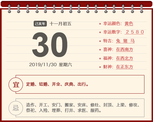 11月30号宜:定婚、结婚、开业、庆典、出行。