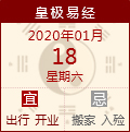 2020年1月18日 星期六 农历己亥年十二月二十四 本日八字 己亥 丁丑 庚申 丙子 五行纳音 石榴木 日干 庚金(金命) 幸运颜色 黑色 幸运数字 1 建除十二神 危日 值日星神 司命 彭祖百忌 庚不经络织机虚张,申不安床鬼祟入房。 吉神宜趋 天德、月德、母仓、阳德 详细信息